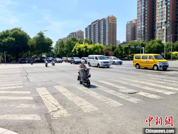 圖為石家莊街頭,頂著烈日出門的市民穿著防曬服,戴著遮陽帽。李曉偉 攝
