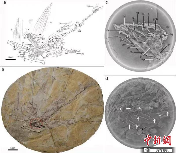 熱河鳥(niǎo)標(biāo)本(IVPP V14978)的線描、攝影和掃描。中國(guó)科學(xué)院古脊椎所 供圖