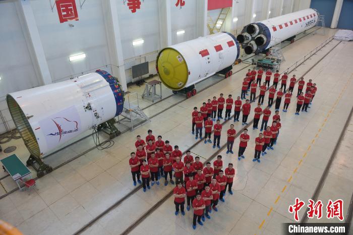 8月1日,長征四號丙運(yùn)載火箭研制團(tuán)隊(duì)站成數(shù)字“100”的隊(duì)形。(中國航天科技集團(tuán)有限公司八院 供圖)
