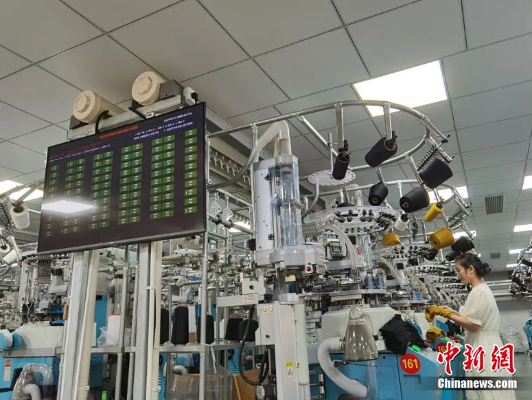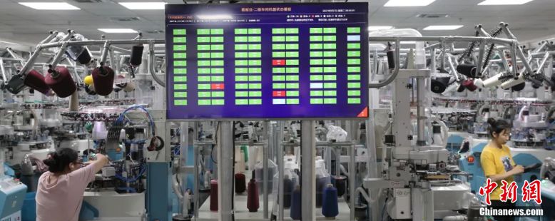 以縫頭為例,在一體化襪機(jī)之前,傳統(tǒng)的手工縫頭需要人工操作,效率很低,更新為襪機(jī)后,成本降低了至少一半。而智能系統(tǒng)端,機(jī)器的效率則被更加量化地體現(xiàn)在大屏幕上,一目了然,哪臺(tái)襪機(jī)出現(xiàn)問(wèn)題,車間數(shù)據(jù)顯示屏就能看到,避免生產(chǎn)出次品襪子造成浪費(fèi)。