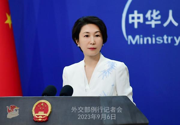 中新網北京9月6日電 (謝雁冰 秦亦姝)中國外交部發(fā)言人毛寧6日主持例行記者會。