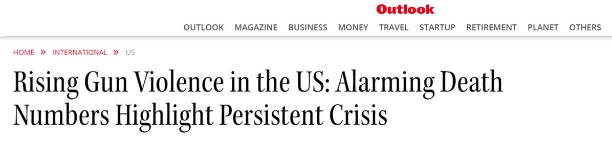中國(guó)日?qǐng)?bào)網(wǎng)9月14日電 印度知名新聞雜志《瞭望》(Outlook India)網(wǎng)站近日刊文稱(chēng),2022年,美國(guó)槍支暴力造成的死亡人數(shù)高達(dá)48117人。多到驚人的涉槍死亡人數(shù)突顯出,槍支暴力這一問(wèn)題在美國(guó)造成的持久性危機(jī)。在美國(guó),涉槍死亡率甚至是溺水死亡率的5倍多。