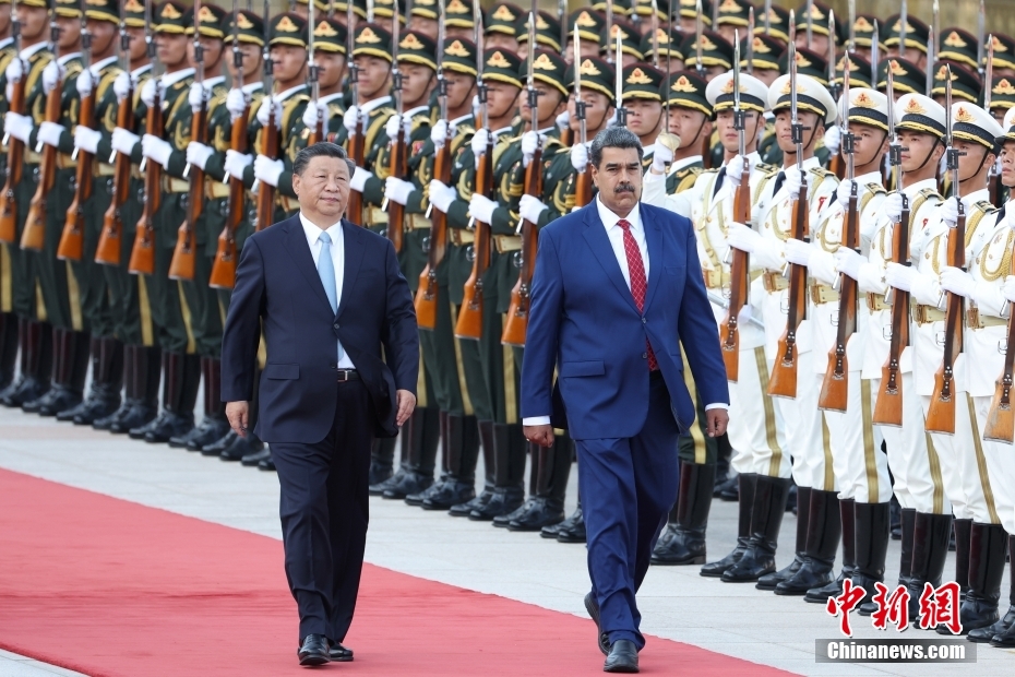 9月13日下午,中國國家主席習近平在北京人民大會堂同來華進行國事訪問的委內(nèi)瑞拉總統(tǒng)馬杜羅舉行會談。會談前,習近平在人民大會堂東門外廣場為馬杜羅舉行歡迎儀式。中新社記者 盛佳鵬 攝