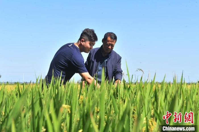 吉林萬昌農(nóng)民楊萬芳從稻浪中掐下一節(jié)稻穗,捏了捏穗根上的稻粒,遞給“90后”臺胞林駿???,“這稻子長得多好,根兒上的粒全是實(shí)的?!?/p>
