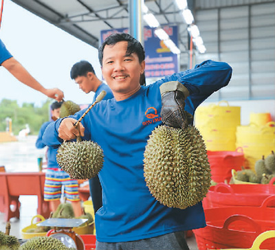 “我種植榴蓮12年了,幾年前有中國(guó)客商來(lái)到春蓬,我把果園包給了中國(guó)客商,這樣價(jià)格穩(wěn)定、收款及時(shí),榴蓮大批量成熟時(shí)不用發(fā)愁銷路。”猜瓦樂(lè)呵呵地說(shuō),“我還沒(méi)去過(guò)中國(guó),但知道泰國(guó)榴蓮在中國(guó)很受歡迎,我們很開(kāi)心?!?/p>