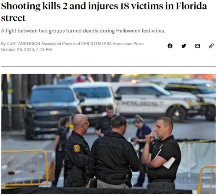 中新網(wǎng)10月30日電 據(jù)美國廣播公司(ABC)報(bào)道,當(dāng)?shù)貢r(shí)間29日,美國佛羅里達(dá)州坦帕市萬圣節(jié)慶?;顒?dòng)期間發(fā)生大規(guī)模槍擊,造成2人死亡,18人受傷。