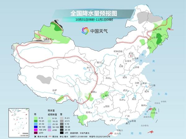 10月31日,江南北部降雨將結(jié)束,而廣東、廣西雨勢將增強。預(yù)計西藏東部、川西高原中部等地的部分地區(qū)有小雪或雨夾雪;貴州西南部、云南東南部、廣東西部、廣西等地有中雨,其中,云南東南部、廣西東南部、廣東西南部等地的部分地區(qū)有大雨。