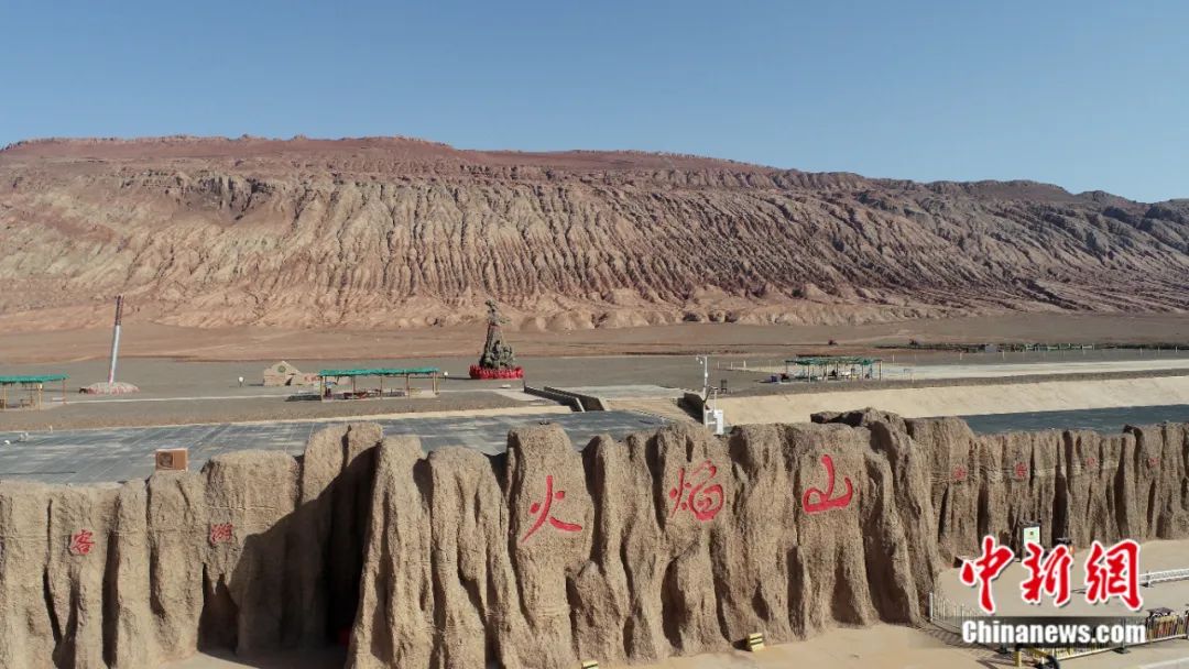 火焰山景區(qū)內(nèi)金箍棒溫度計(jì)溫度超50度。木塔力甫 攝
