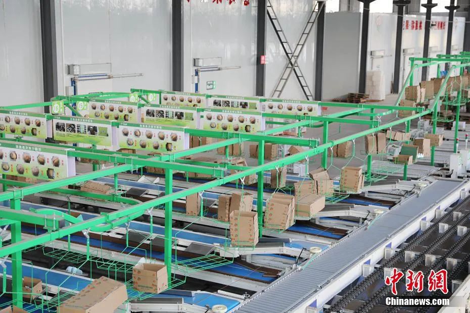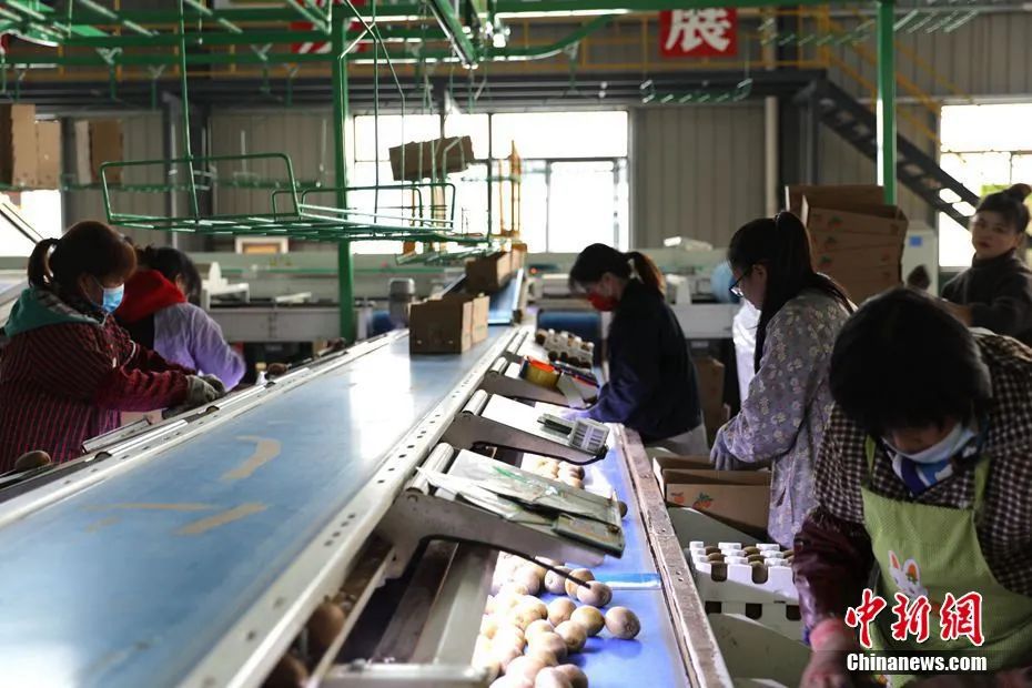 圖為工廠內的獼猴桃裝箱流水線。石芙蓉 攝