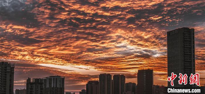 中新網(wǎng)昆明1月11日電 (黃興鴻)11日黃昏時分,云南昆明、德宏、臨滄等地的天空出現(xiàn)密集的“魚鱗云”。在夕陽的映照下,似霞似錦,如夢如幻。眾多網(wǎng)友在手機上的社交平臺上狂熱“曬”云,為彩云之南“上分”。
