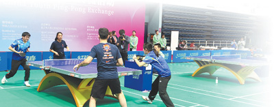瀟灑的發(fā)球,靈活的走位,穩(wěn)健的揮拍擊球,弗吉尼亞大學(xué)學(xué)生謝家駿和清華大學(xué)學(xué)生李嘉懿頻頻配合得分、擊掌慶祝。“雖然是第一次搭檔,但我們配合很默契。我中文不太好,乒乓球成了我們最好的交流語言。”謝家駿說,和中國朋友一起贏得比賽感到十分開心,希望能第一時間把比賽視頻發(fā)給遠(yuǎn)在美國的媽媽看。