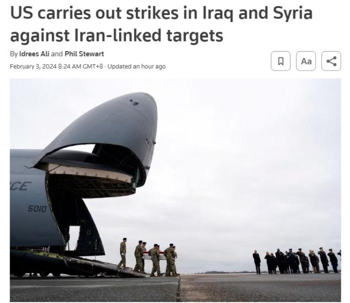 此前報道稱,約旦東北部靠近該國與敘利亞邊界的一處美軍基地1月28日遭無人機(jī)襲擊,造成3名美軍士兵死亡、40多人受傷。美國指認(rèn)關(guān)聯(lián)伊朗的極端武裝人員發(fā)動這起襲擊,伊朗則予以否認(rèn)。