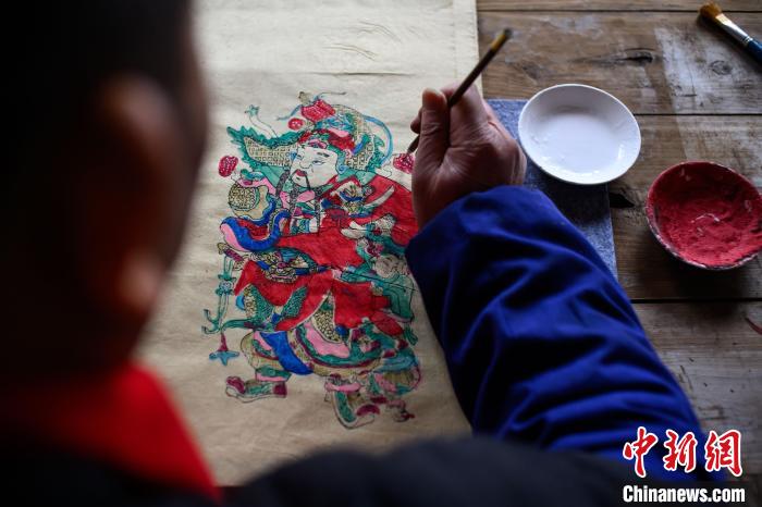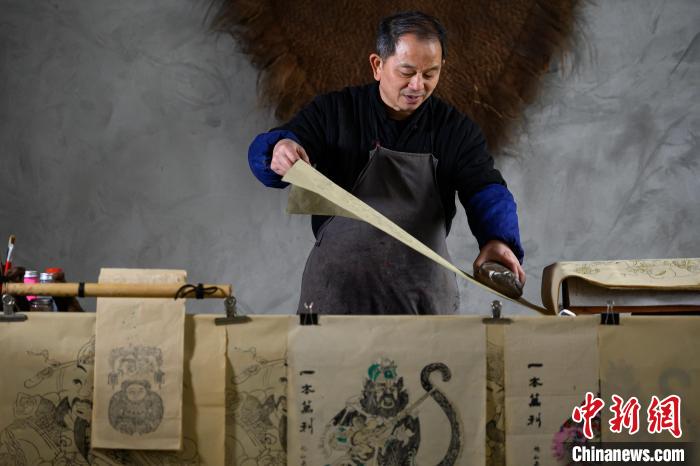 2月6日,梁平木版年畫國家級非遺代表性傳承人徐家輝制作年畫。中新社記者 何蓬磊 攝