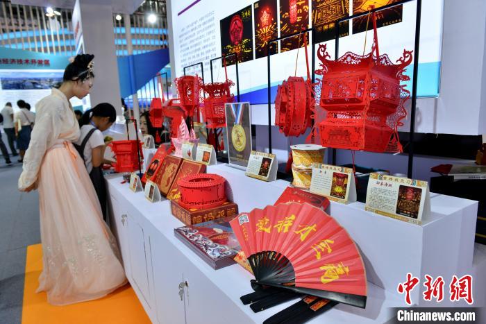 2023年8月5日,福建廈門(mén),泉州傳統(tǒng)花燈文創(chuàng)作品吸引參觀(guān)者。中新社記者 呂明 攝