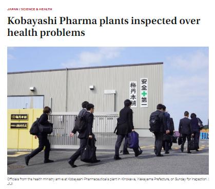 報道還稱,日本厚生勞動省及大阪市政府相關部門在30日對已關閉的小林制藥公司大阪工廠進行了現(xiàn)場檢查。