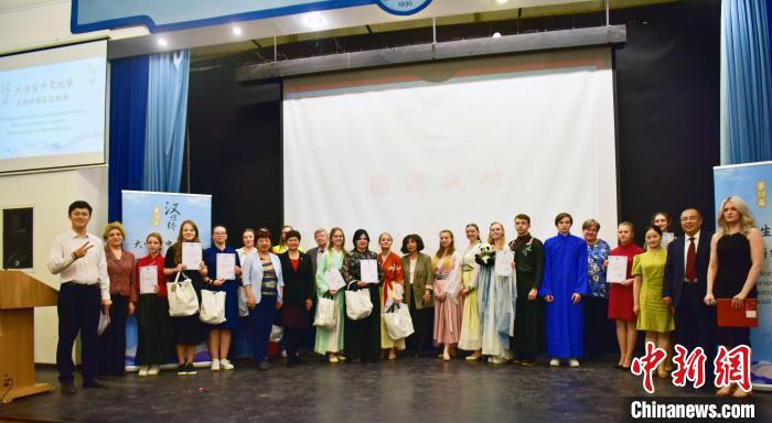 中國駐俄使館教育處一等秘書鄧瀅、莫斯科國立語言大學副校長古謝茵諾娃、莫語大孔院俄方院長謝列茲涅夫、中方院長梅春才等出席本次比賽。