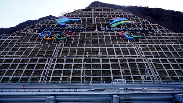京禮高速沿線護(hù)坡布置冬奧會(huì)、冬殘奧會(huì)會(huì)徽標(biāo)志景觀。