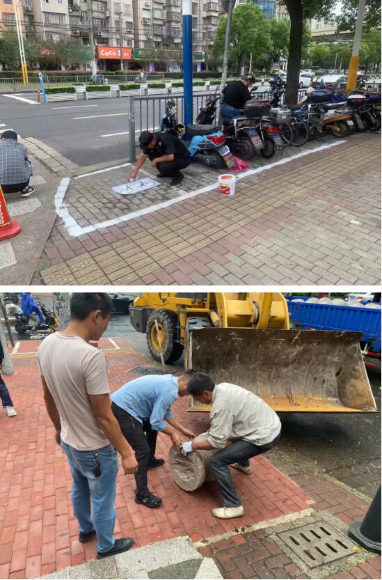針對機動車亂停放的問題,聯(lián)合整治組挨家挨戶對沿街商鋪進行宣傳告知,執(zhí)法部門對上街沿占道停放的機動車先行驅(qū)離清場,施工隊伍緊隨其后,補齊道路隔離欄、路口隔離樁和隔離石墩等物理隔離設施,壓縮違停空間。