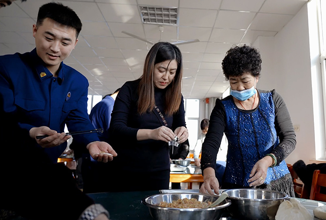 室外寒氣襲人,室內(nèi)溫暖四溢,其樂(lè)融融,消防救援人員及家屬在消防站貼窗花、掛燈籠……參觀中,孩子們稚嫩的聲音回蕩在消防站中,增添了一絲童趣;包水餃環(huán)節(jié),大家分工協(xié)作,你搟皮,我包餡,氣氛和諧,洋溢著“家”的味道,讓這個(gè)冬天情意滿(mǎn)滿(mǎn)。吃餃子、話(huà)家常,應(yīng)和著這溫暖的氛圍,大家圍坐在一起感受著濃濃的年味,昔日嚴(yán)肅的食堂充斥著歡聲笑語(yǔ)。在場(chǎng)一位消防救援人員的家屬表示:“孩子爸爸平時(shí)回家少,工作環(huán)境又比較危險(xiǎn),作為家屬我們能做的就是全力支持他們的工作,今天來(lái)隊(duì)參觀對(duì)他平時(shí)的工作也多了一分了解,以后我會(huì)更加支持他的!”