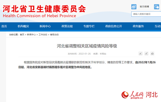 河北省調整區(qū)域疫情風險等級 安新縣1地為中風險地區(qū)