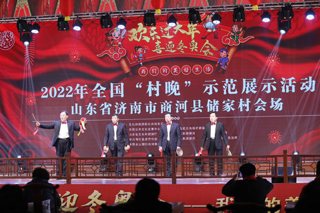 人民網(wǎng)濟(jì)南1月27日電 1月23日,是農(nóng)歷的臘月二十一,一場(chǎng)以“喜迎冬奧會(huì) 歡樂(lè)過(guò)大年”為主題的“村晚”在山省濟(jì)南市商河縣儲(chǔ)家村“舉辦”,這是2022年全國(guó)“村晚”示范展示點(diǎn)錄制現(xiàn)場(chǎng)之一。
