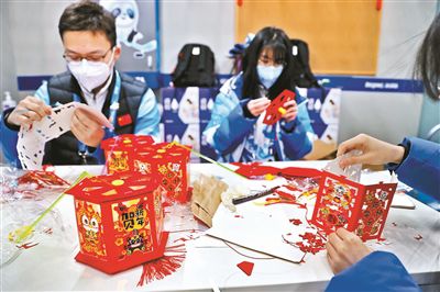 昨天是中國(guó)的傳統(tǒng)節(jié)日元宵佳節(jié),國(guó)家體育館開(kāi)展了豐富多彩的慶?;顒?dòng),當(dāng)天場(chǎng)館餐廳提供了湯圓,場(chǎng)館禮賓部工作人員向外賓介紹中國(guó)吃湯圓的由來(lái)和寓意,并邀請(qǐng)大家品嘗。在志愿者之家內(nèi),彩燈高懸,充滿(mǎn)歡聲笑語(yǔ),志愿者們做燈籠、猜燈謎,共同度過(guò)一個(gè)歡樂(lè)祥和的元宵節(jié)。圖為冬奧志愿者在制作花燈。文并攝/本報(bào)記者 黑建軍