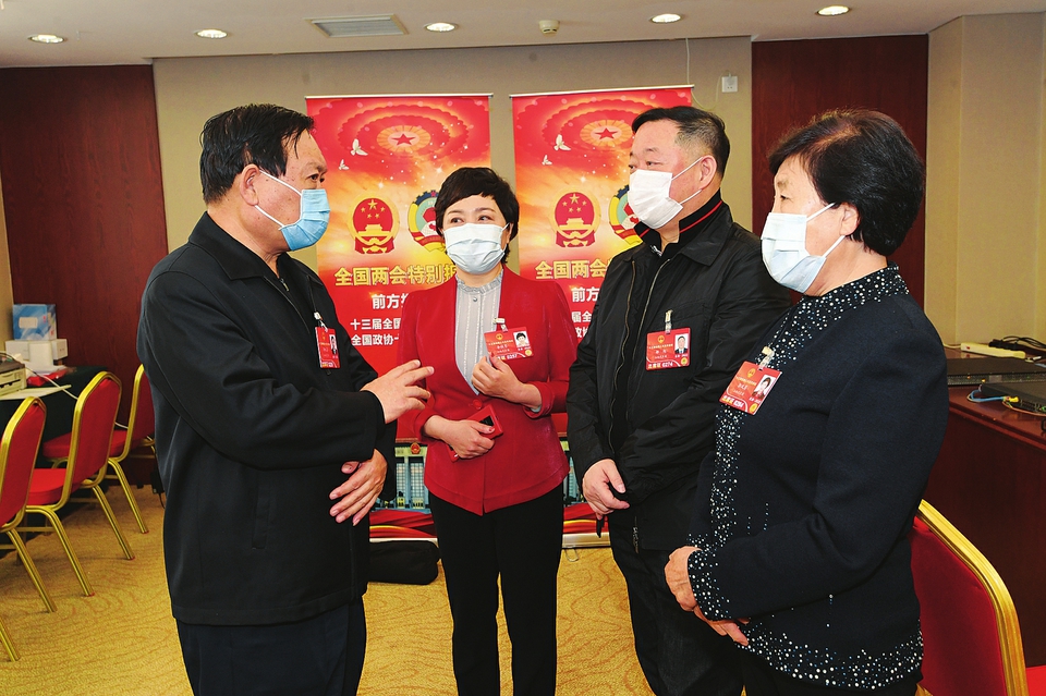 3月6日上午,山西代表團舉行小組會議,審議政府工作報告。代表們圍繞政府工作報告內(nèi)容和民生熱點話題,直抒己見,暢所欲言。(記者李聯(lián)軍攝)