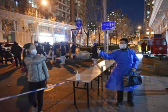 人民網(wǎng)北京3月26日電 (池夢蕊)照片上,身著藍色隔離衣的李彥博比出愛心手勢,站在對面帶口罩的女士笑著揮揮手。3月20日,東城區(qū)崇外街道樓宇工作站工作人員李彥博進入國瑞城東區(qū)封控管控區(qū)服務,同為崇外街道社工的妻子徐碩菲忙完手上的工作,趕來給他送換洗衣服,這一場景被一旁的同事抓拍了下來。此后,夫妻倆各自奮戰(zhàn)在防疫一線,無暇再見面。