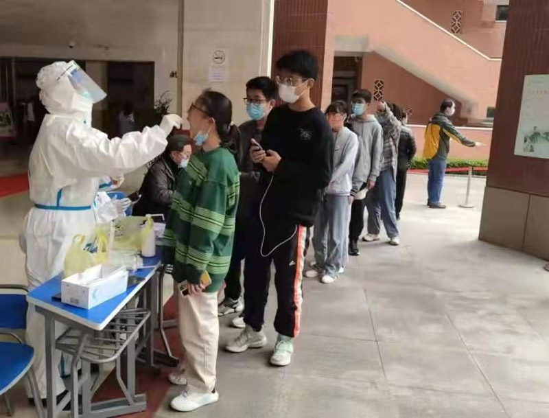 由于學(xué)校實(shí)行準(zhǔn)封閉管理,西藏學(xué)生長(zhǎng)期住校。面對(duì)嚴(yán)峻的疫情防控形勢(shì),及時(shí)安全的核酸檢測(cè)成為保障學(xué)生安全的頭等大事。上海市第一人民醫(yī)院得知學(xué)校希望醫(yī)務(wù)人員能進(jìn)校園對(duì)住校師生員工進(jìn)行核酸檢測(cè)的要求后,克服任務(wù)重、人手緊的困難,每周抽調(diào)醫(yī)護(hù)人員志愿到學(xué)校,解決核酸檢測(cè)的實(shí)際困難,為西藏班學(xué)生送去關(guān)心和溫暖。(龍鋼)