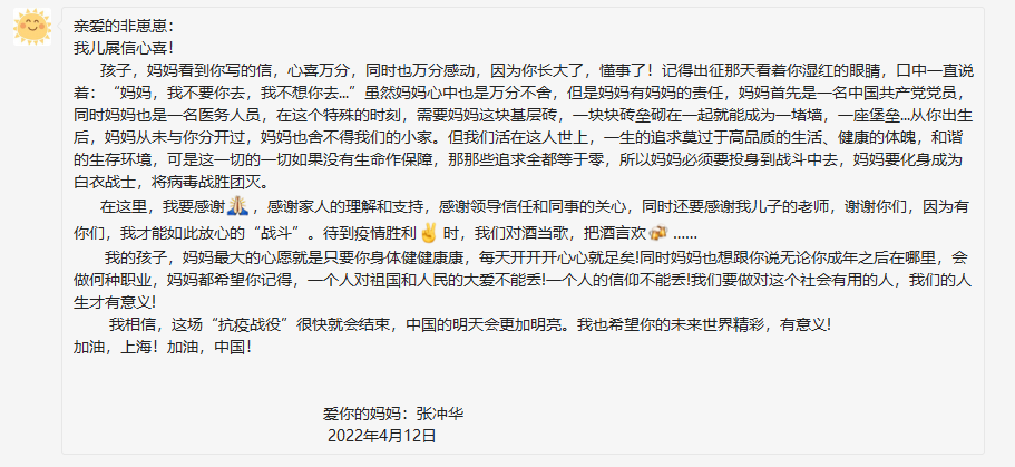 “一個人的信仰不能丟” 援滬護(hù)士凌晨給兒子寫下一封家書