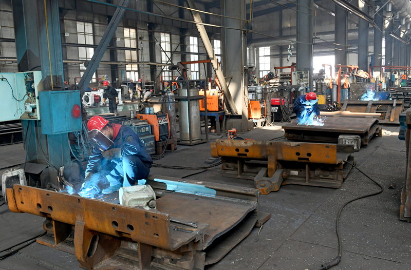 4月16日,大同市同華礦機(jī)制造有限責(zé)任公司生產(chǎn)車(chē)間一景。大同市對(duì)各生產(chǎn)企業(yè)工作人員進(jìn)行閉環(huán)管理,做到疫情期間不停工。李冬賓 攝