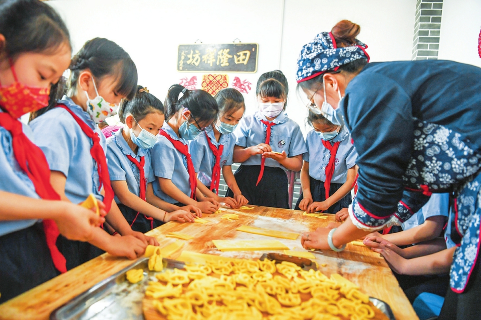 5月3日,平遙縣實(shí)驗(yàn)小學(xué)三年級(jí)463班的學(xué)生在平遙縣田隆祥油花花非遺傳學(xué)基地體驗(yàn)油花花、月餅等傳統(tǒng)食品的制作過程?!拔逡弧逼陂g,平遙縣實(shí)驗(yàn)小學(xué)在做好疫情防控的同時(shí),組織學(xué)生就地開展多種形式的非遺文化項(xiàng)目傳學(xué)活動(dòng),讓孩子們近距離感受非遺文化的魅力,豐富假期生活。(梁生仁攝)