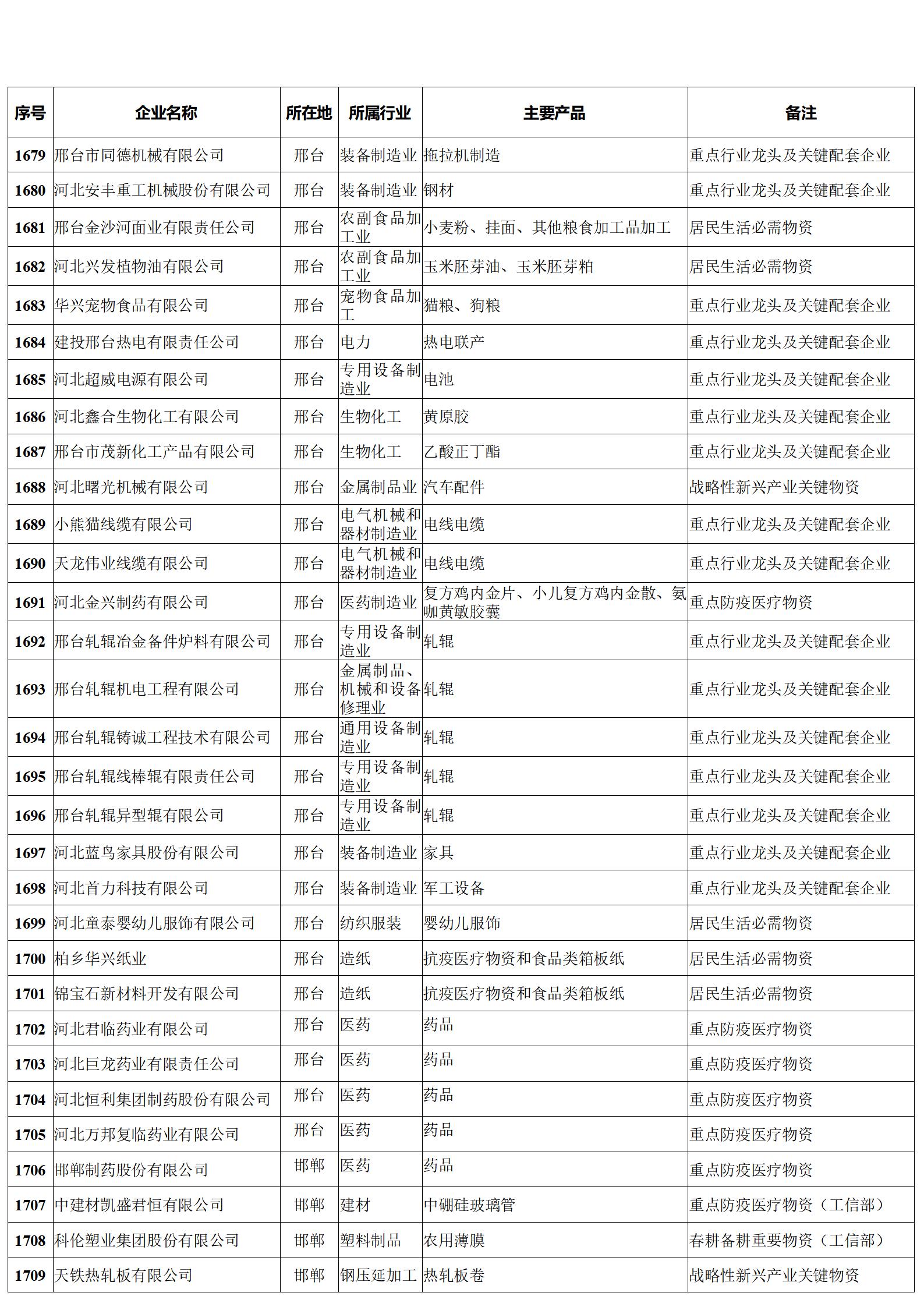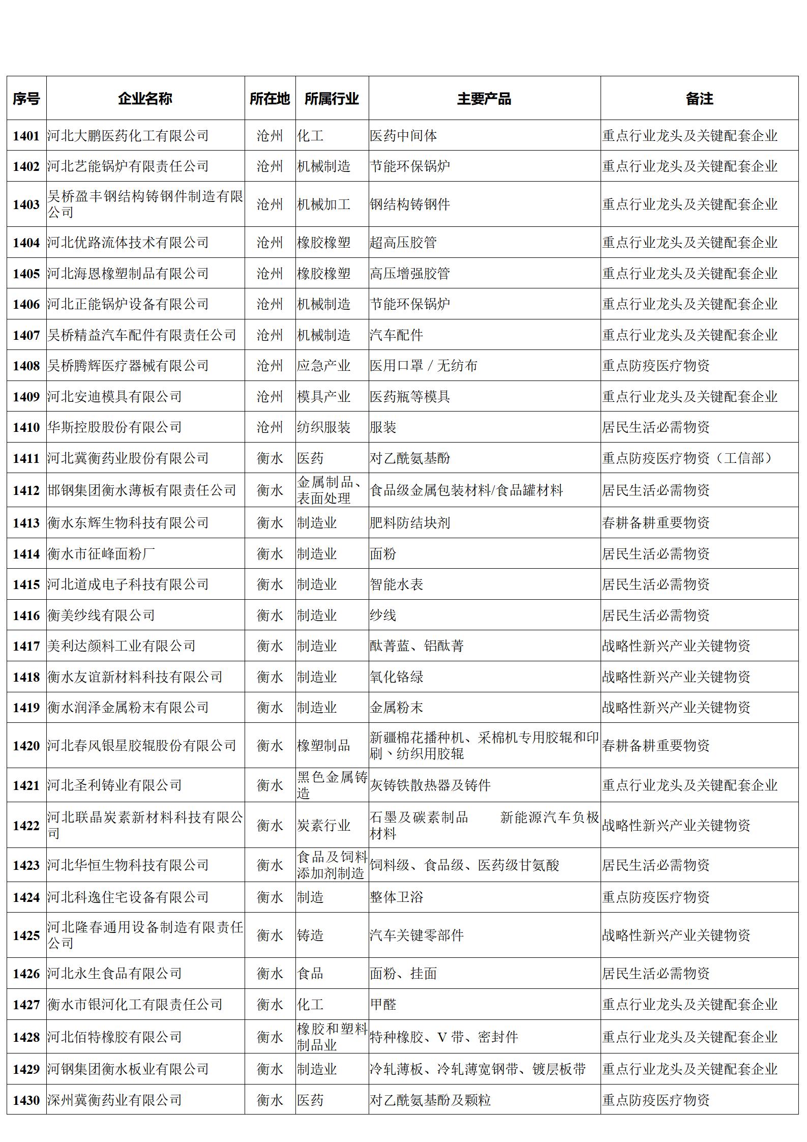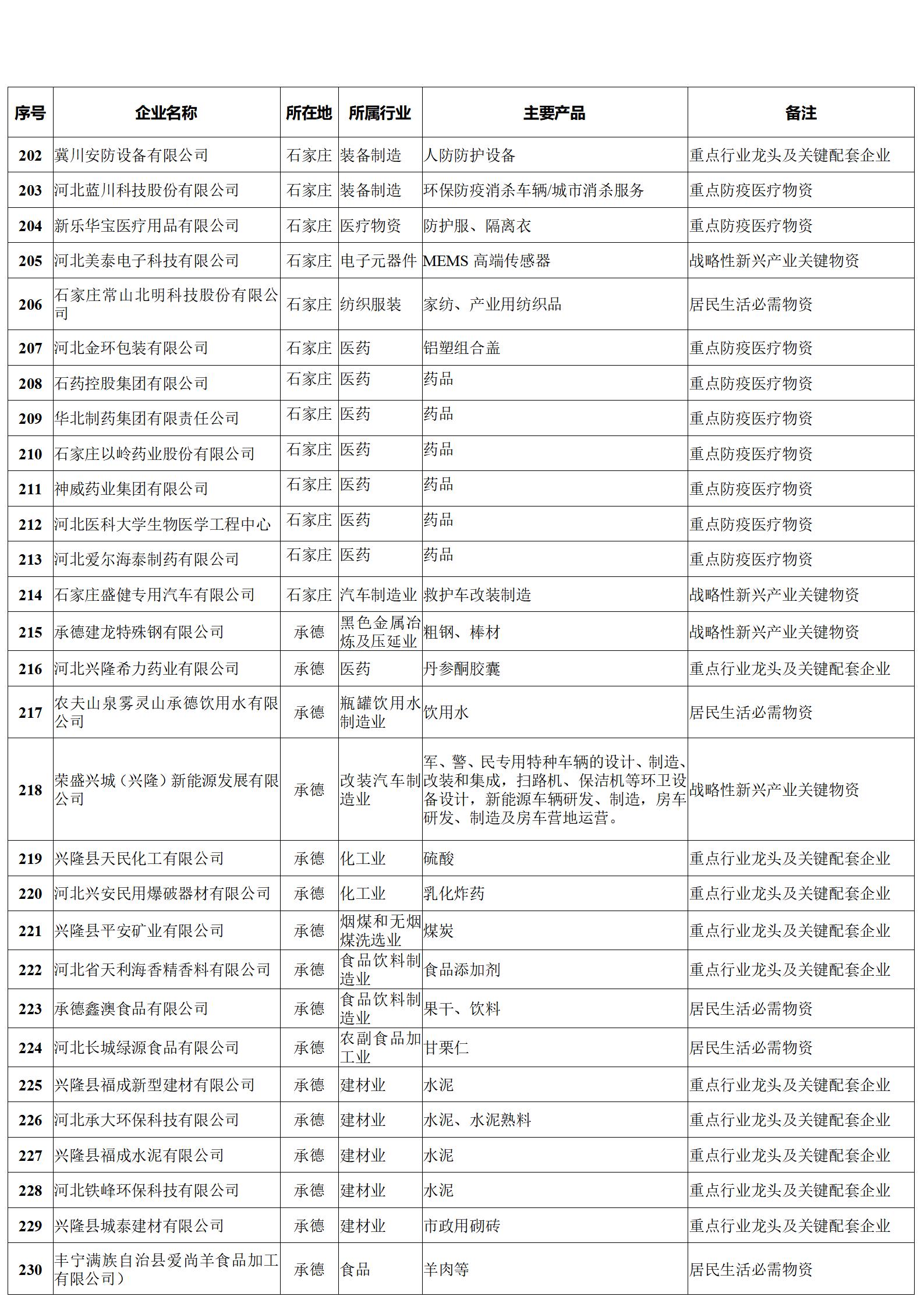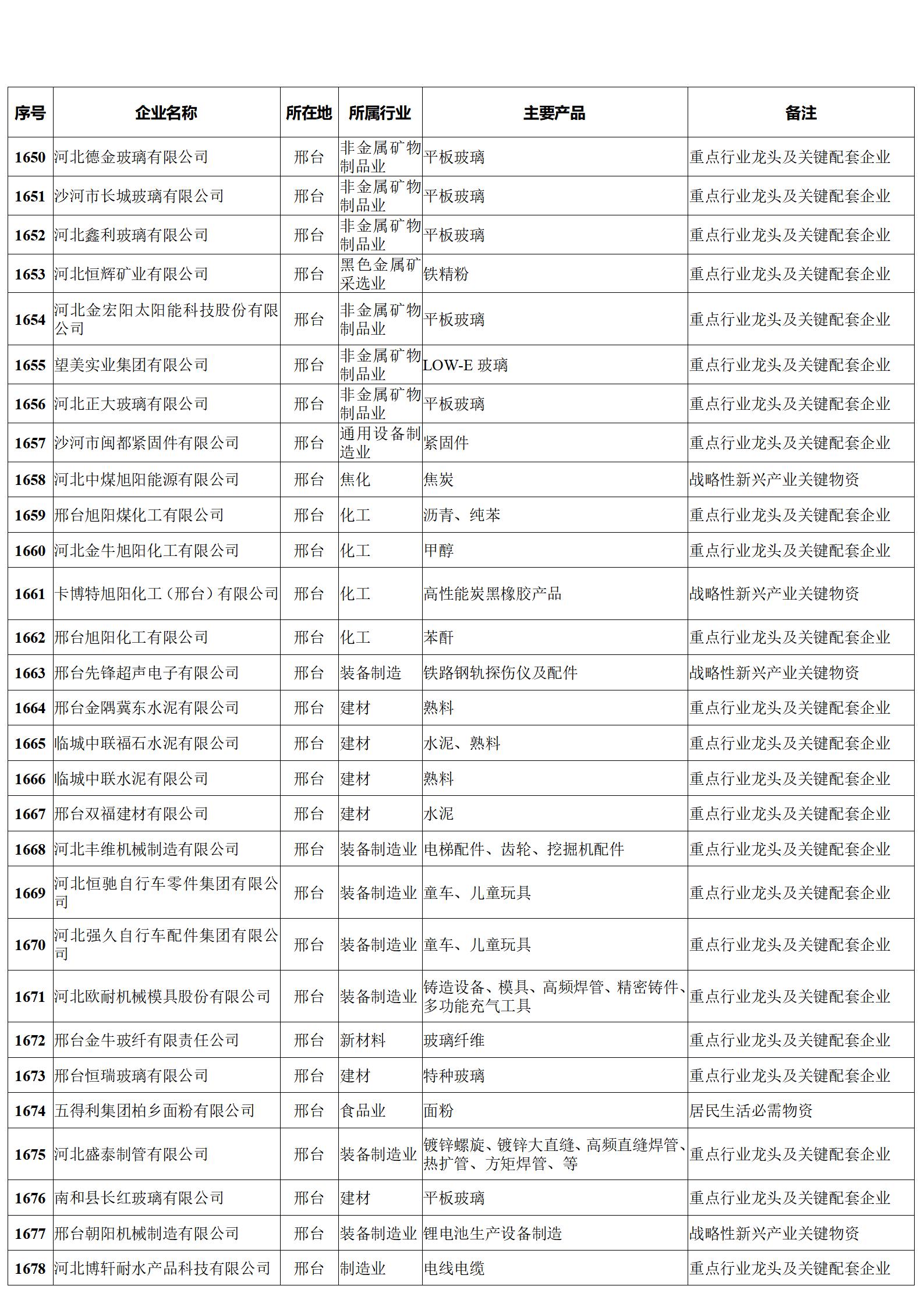河北省重點產(chǎn)業(yè)鏈供應(yīng)鏈“白名單”企業(yè)