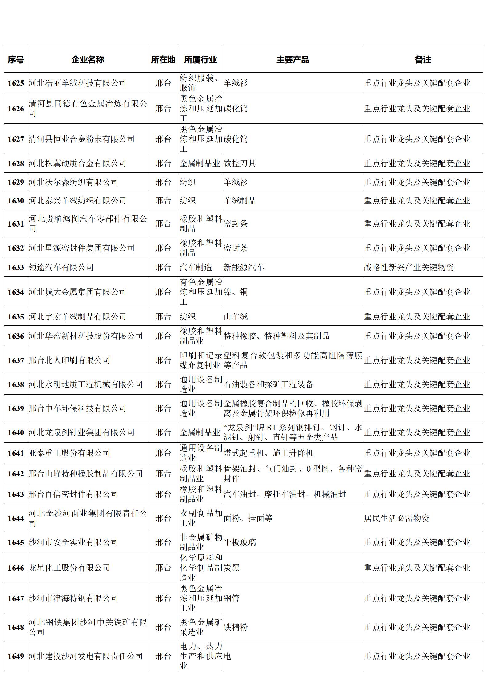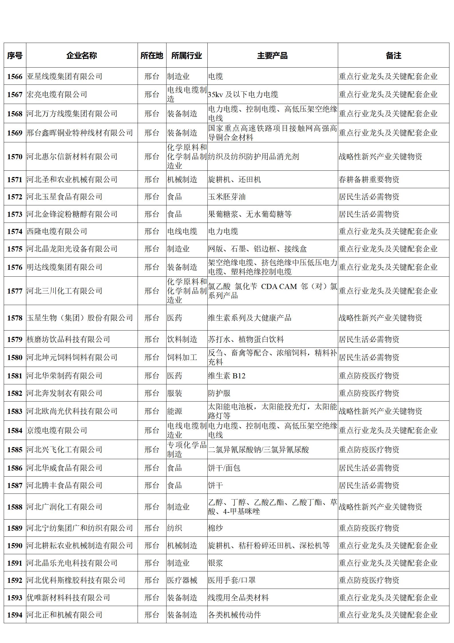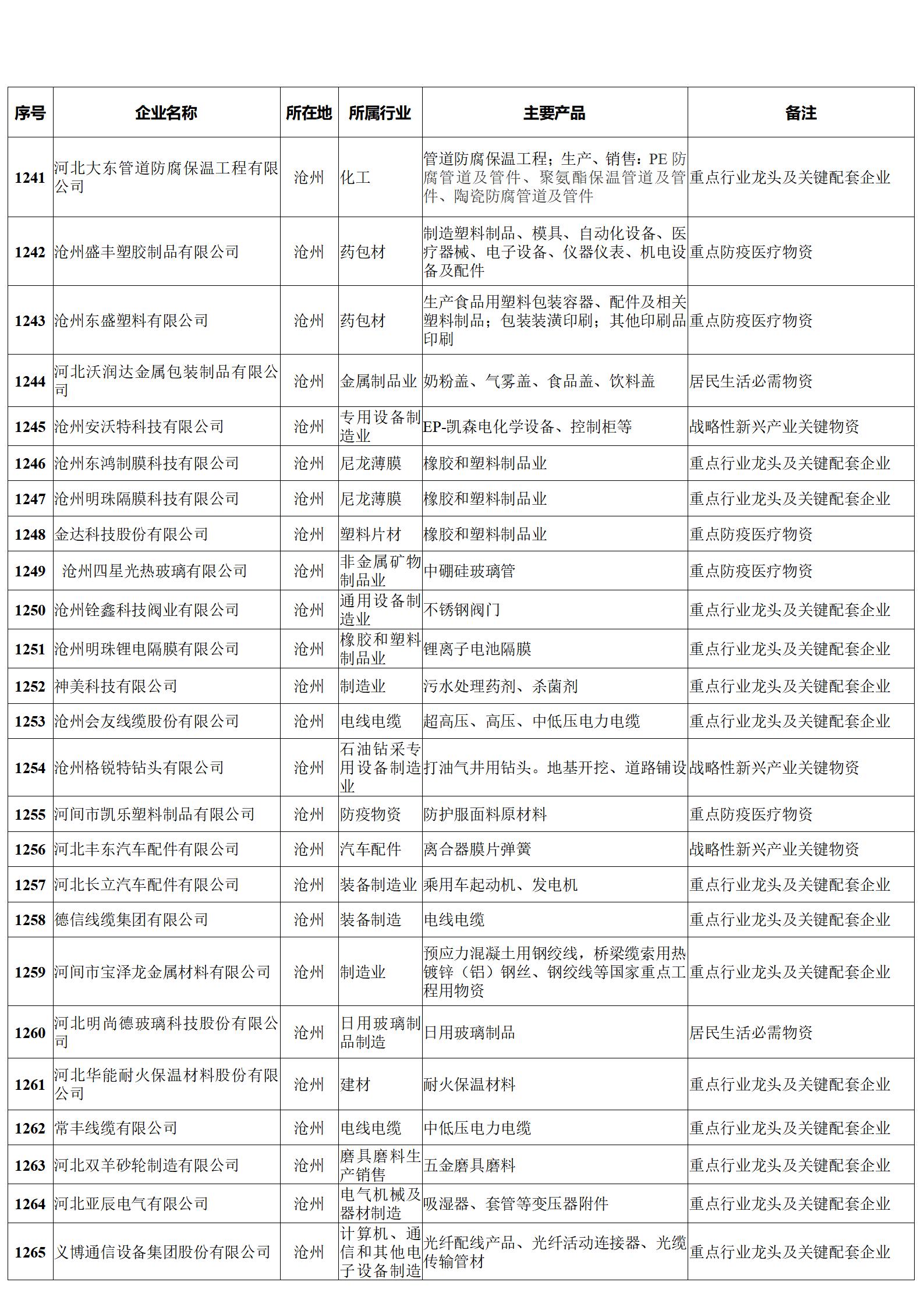 河北省重點產(chǎn)業(yè)鏈供應(yīng)鏈“白名單”企業(yè)