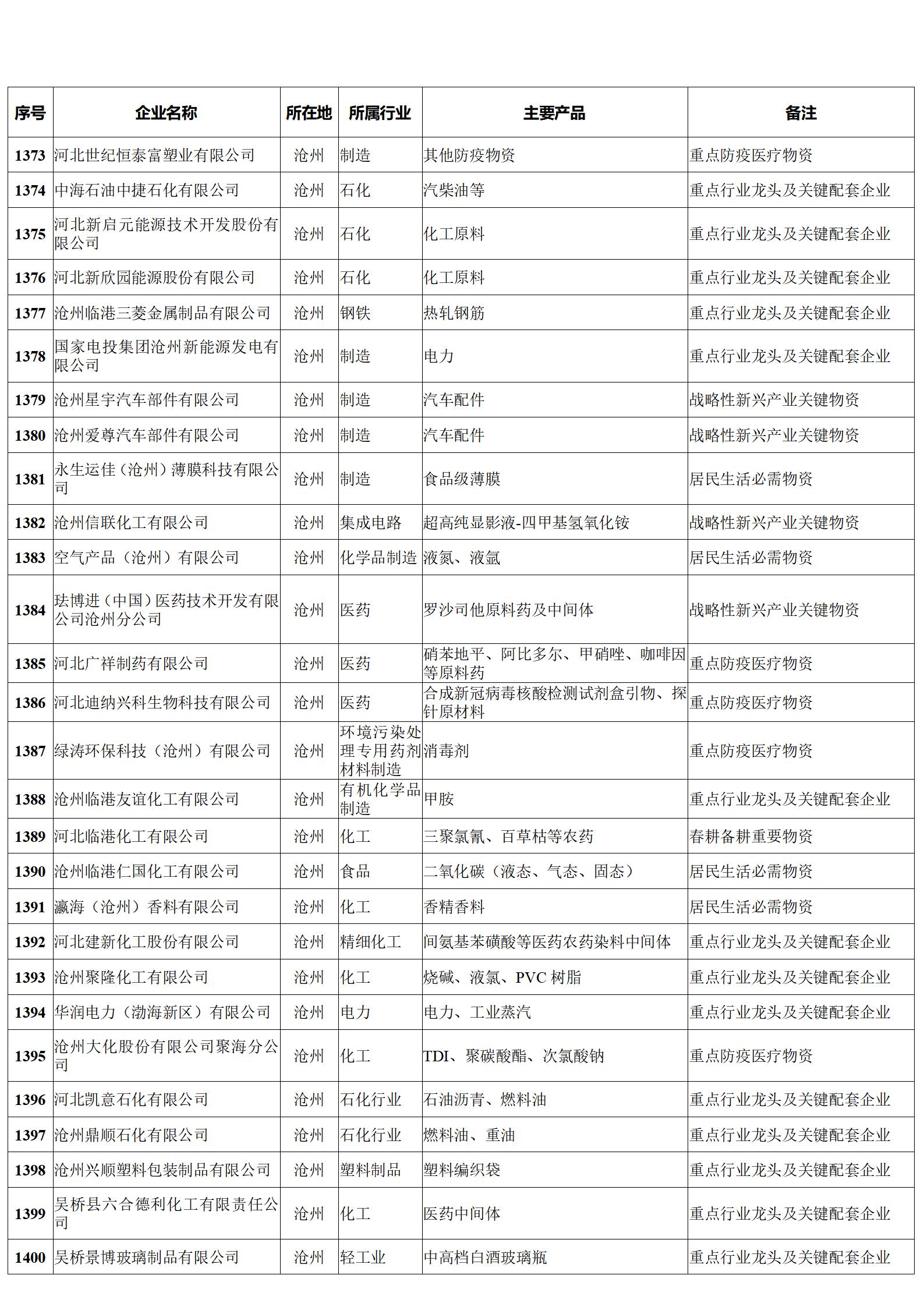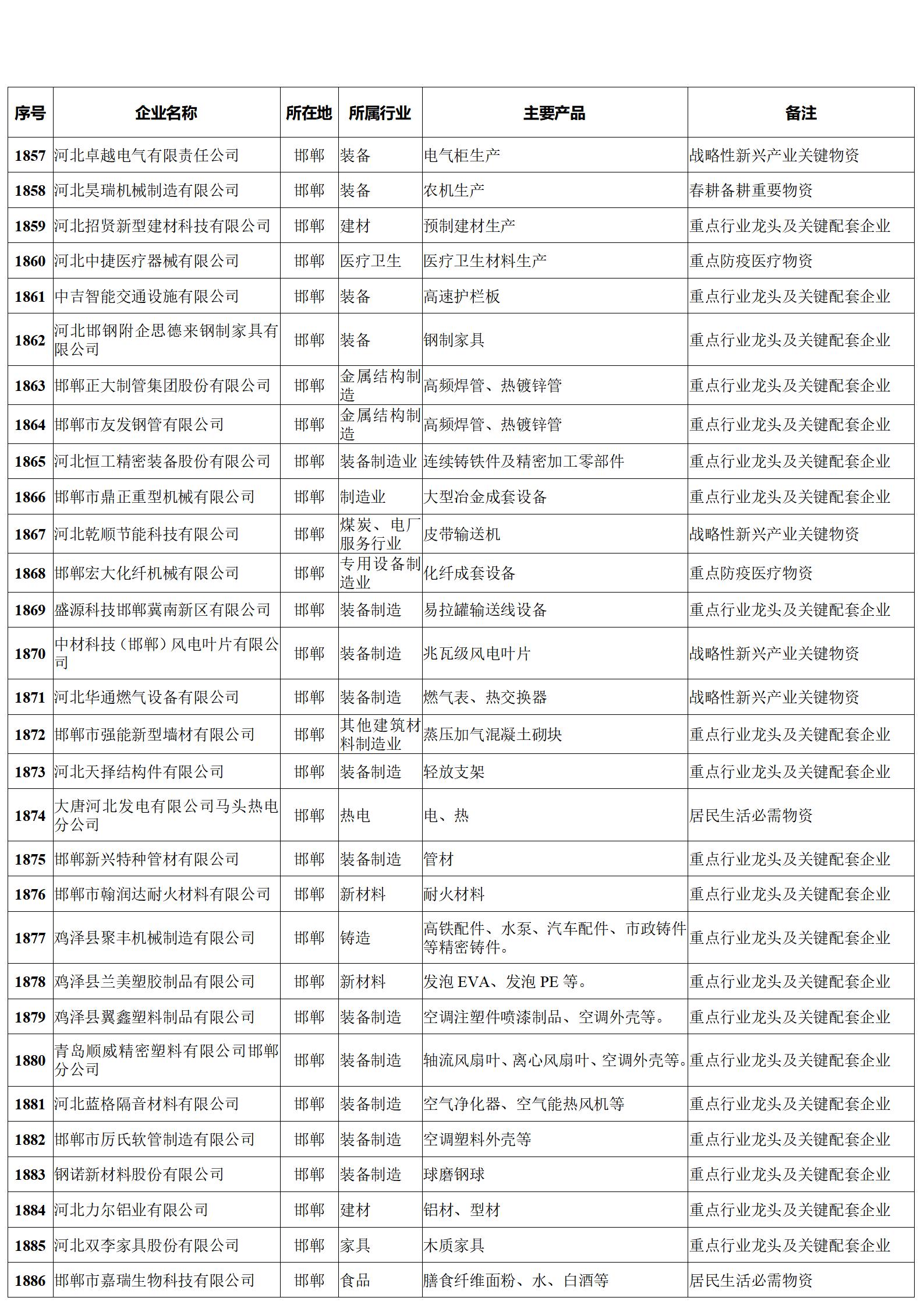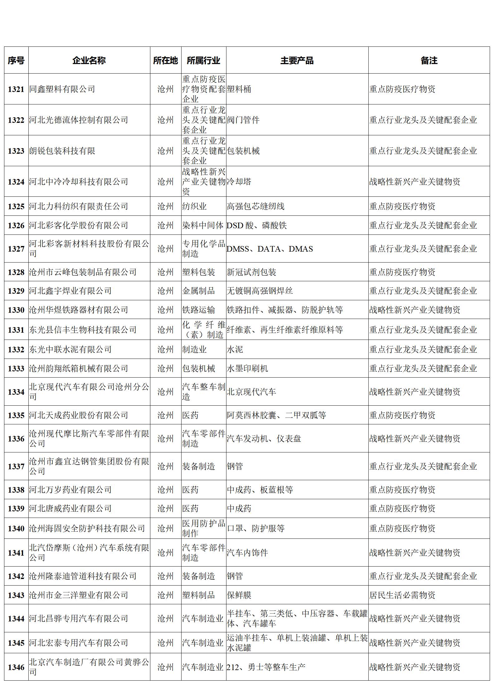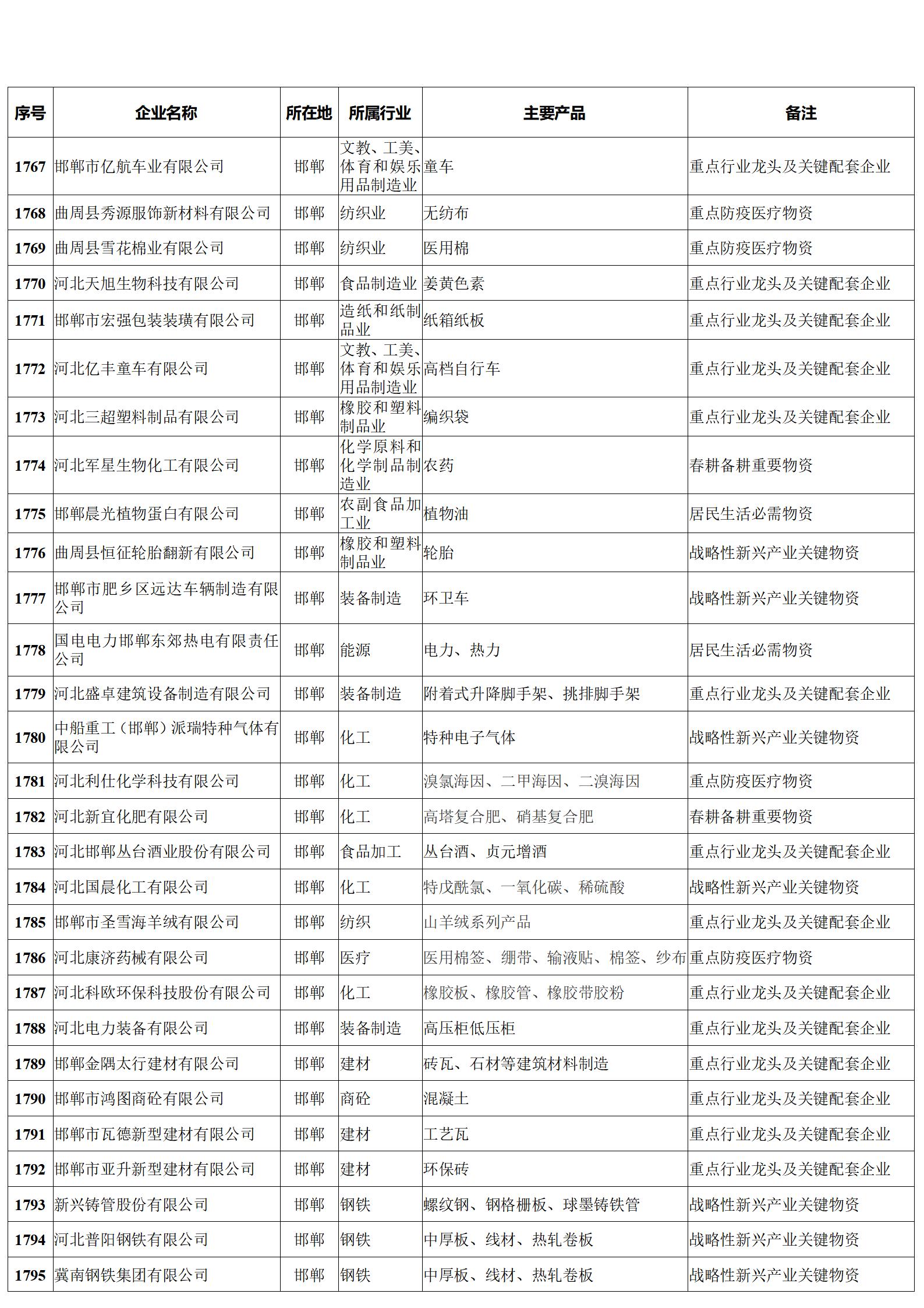 河北省重點產(chǎn)業(yè)鏈供應(yīng)鏈“白名單”企業(yè)