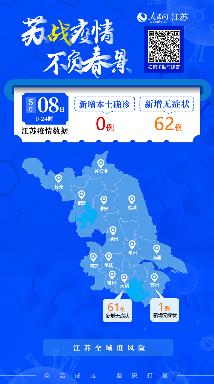 5月8日江蘇新增本土無(wú)癥狀感染者62例 無(wú)新增確診病例