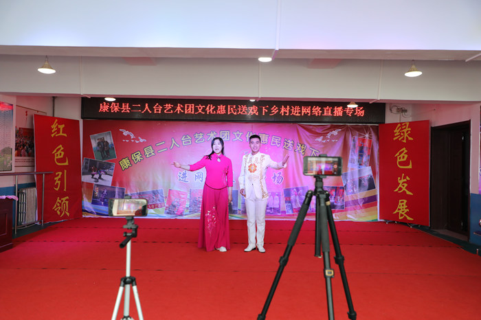 今年以來,受疫情影響不能線下聚集觀演,康??h新時代文明實踐中心指導(dǎo)二人臺藝術(shù)團開始嘗試用手機直播的形式,通過“線上”二人臺表演將最新的理論政策通過熟悉的“鄉(xiāng)音”送到老百姓身邊。