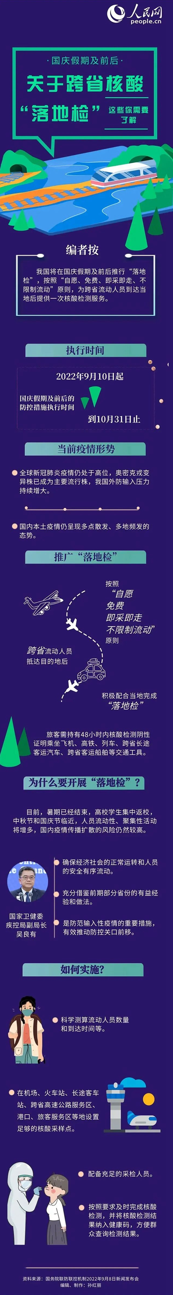 泰州倡導(dǎo)廣大市民非必要不前往有風(fēng)險(xiǎn)地區(qū)或本土疫情報(bào)告的城市,盡量減少跨地市出行,如確需出行,請(qǐng)?zhí)崆傲私饽康牡爻鞘幸咔閯?dòng)態(tài)和防疫政策,做好出行路線規(guī)劃,全程做好個(gè)人防護(hù)。對(duì)近7日內(nèi)有高中低風(fēng)險(xiǎn)區(qū)旅居史人員、解除隔離后返回目的地的入境人員、省外來(lái)(返)泰人員,需通過(guò)線上報(bào)備、電話報(bào)備、現(xiàn)場(chǎng)報(bào)備、委托報(bào)備方式主動(dòng)進(jìn)行報(bào)備(鼓勵(lì)提前報(bào)備)?;疖囌尽⑵嚳瓦\(yùn)站、港口碼頭、高速出口等設(shè)置核酸采樣點(diǎn),為涉疫地區(qū)和省外來(lái)(返)泰人員提供“落地檢”服務(wù)。未進(jìn)行“落地檢”的,賓館酒店要督促外地來(lái)(返)泰旅客于入住12小時(shí)內(nèi)進(jìn)行一次核酸檢測(cè);社區(qū)要督促省外來(lái)(返)泰人員抵泰后12小時(shí)內(nèi)進(jìn)行一次核酸檢測(cè);鼓勵(lì)自駕游人員每到一地主動(dòng)進(jìn)行核酸檢測(cè)。