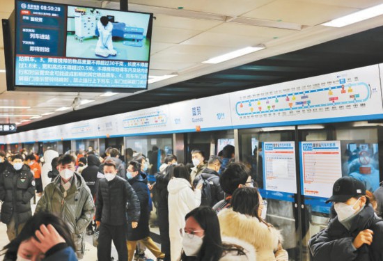 昨天,在國貿(mào)站,乘客逐漸增多,北京地鐵已縮短發(fā)車間隔。本報(bào)記者 鄧偉攝