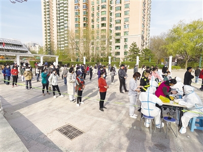 4月7日,海淀區(qū)中關(guān)村街道太陽園,小區(qū)居民在進(jìn)行全員核酸檢測。新京報記者 浦峰 通訊員 李啟晗 攝