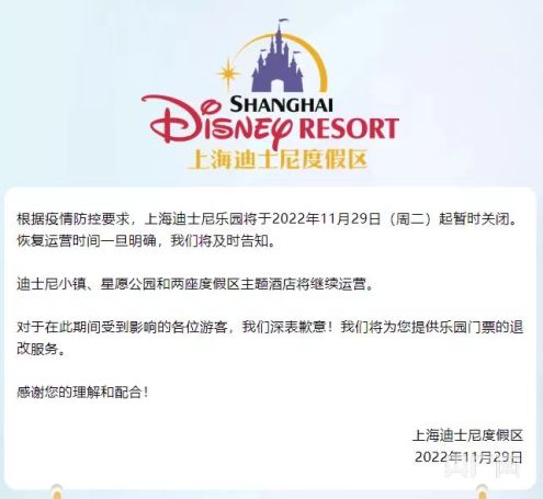 央廣網(wǎng)上海11月29日消息(記者林馥榆)記者從上海迪士尼度假區(qū)獲悉,根據(jù)疫情防控要求,上海迪士尼樂園于11月29日起暫時(shí)關(guān)閉,恢復(fù)運(yùn)營時(shí)間待定。