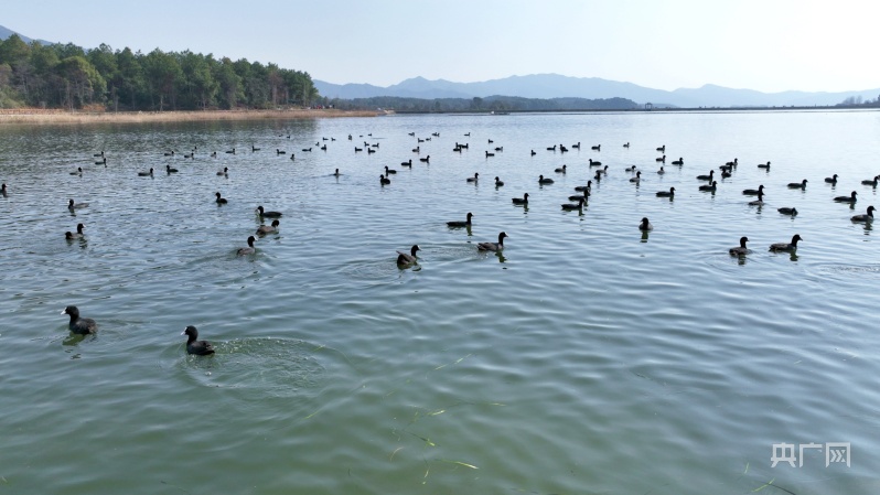 江西分宜:數百只白骨頂雞“做客”濕地公園