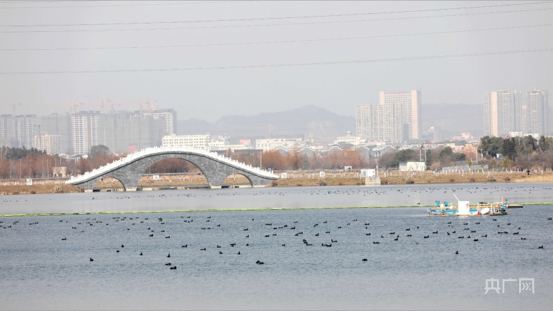 分宜縣介溪濕地公園云集數百只白骨頂雞(央廣網發(fā) 袁建兵 攝)