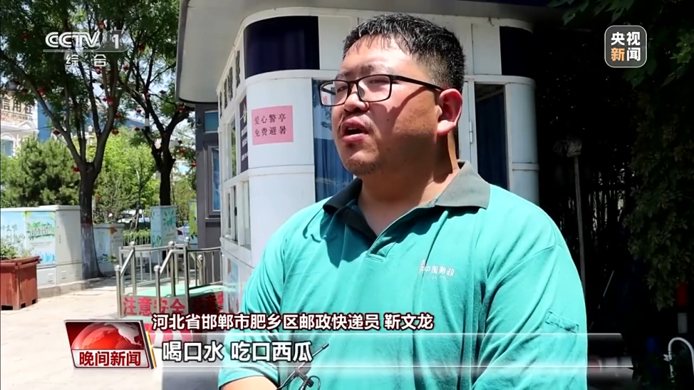 河北省邯鄲市肥鄉(xiāng)區(qū)郵政快遞小哥 靳文龍:多虧了這個(gè)愛(ài)心警亭,在這里避避暑,喝口水,吃塊西瓜,涼滋滋的。