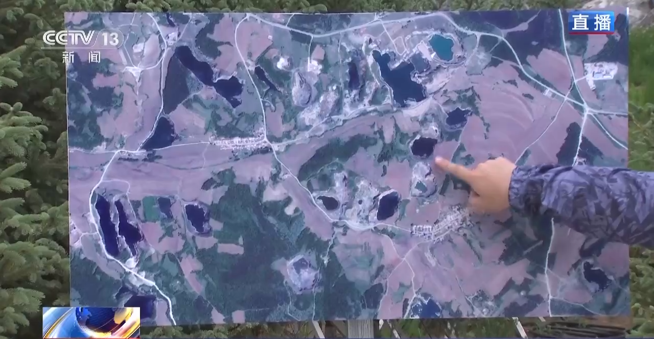 這是吉林一號衛(wèi)星近期從50萬米高空拍攝到的遙感影像,您看我現(xiàn)在手指的每一處,都是當年由于采礦遺留下來的礦坑,大大小小有將近70個,當年只要一進行生產(chǎn)就會卷起漫天的灰塵。