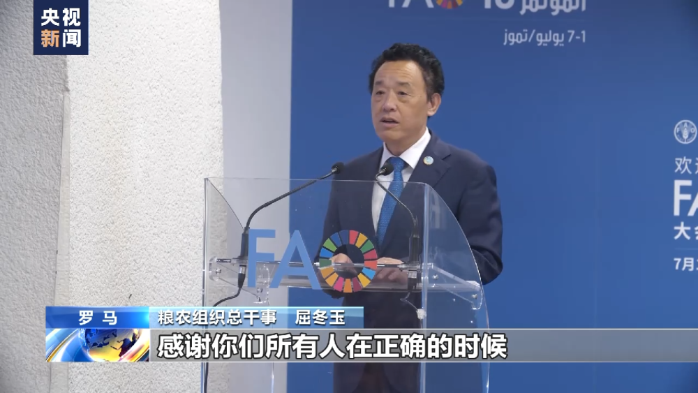 糧農(nóng)組織總干事 屈冬玉:尊敬的(糧農(nóng)組織大會)主席、副主席、女士們、先生們,感謝你們所有人在正確的時候作出了正確的選擇,讓我們團(tuán)結(jié)起來建設(shè)以人為本的更美好的世界、更健康的地球、更繁榮的世界。你們可以信任我和我的團(tuán)隊。我會開始倒計時,為我的承諾開始奔跑。多謝。
