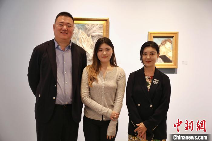 6月底,在北京舉辦個(gè)人藝術(shù)展的臺灣青年于飛(中)與父母。中新社記者 李雪峰 攝