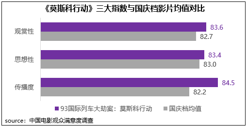 《莫斯科行動(dòng)》根據(jù)20世紀(jì)90年代跨境追捕搶劫案犯案件改編,在真實(shí)社會(huì)事件基礎(chǔ)之上有機(jī)融入商業(yè)化要素,三大指數(shù)得分均超83分。