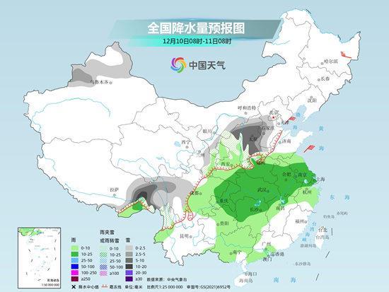 “預(yù)計12月10日開始,隨著暖濕氣流加強(qiáng)北上,與北方南下的冷空氣相結(jié)合,中東部地區(qū)將迎來大范圍雨雪天氣?!蹦壳皝砜?,10日至11日,華北、東北部分地區(qū)有小到中雪、局地大雪,黃淮北部、陜西北部有雨轉(zhuǎn)雨夾雪或雪,黃淮南部、江漢、江淮、江南、華南北部等地有小到中雨,局地大雨。
