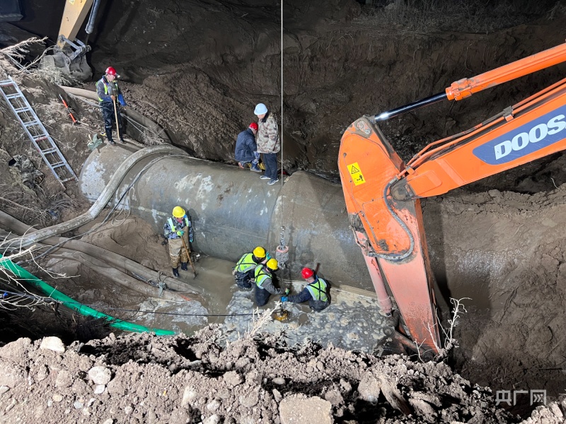 張文偉說:“因為這個管道是個兩米直徑的供水管線,是個主管線,它破裂以后水量特別大。管線是在耕地上,維修車輛是進不去的。維修首先得修筑施工通道,所有車輛人員靠近不了,然后關閘停水,走施工通道過去以后,進行原有管道抽排,管道里都是滿水,必須把水排干凈才能搶修,才能發(fā)現它是哪兒壞了,我們采取哪種方式來進行搶修。搶修方案有很多種,我們也提前都有預案。所以抽水時間很長,上游就有7萬多立方的水,抽排就是一個很大的難點?!?/p>